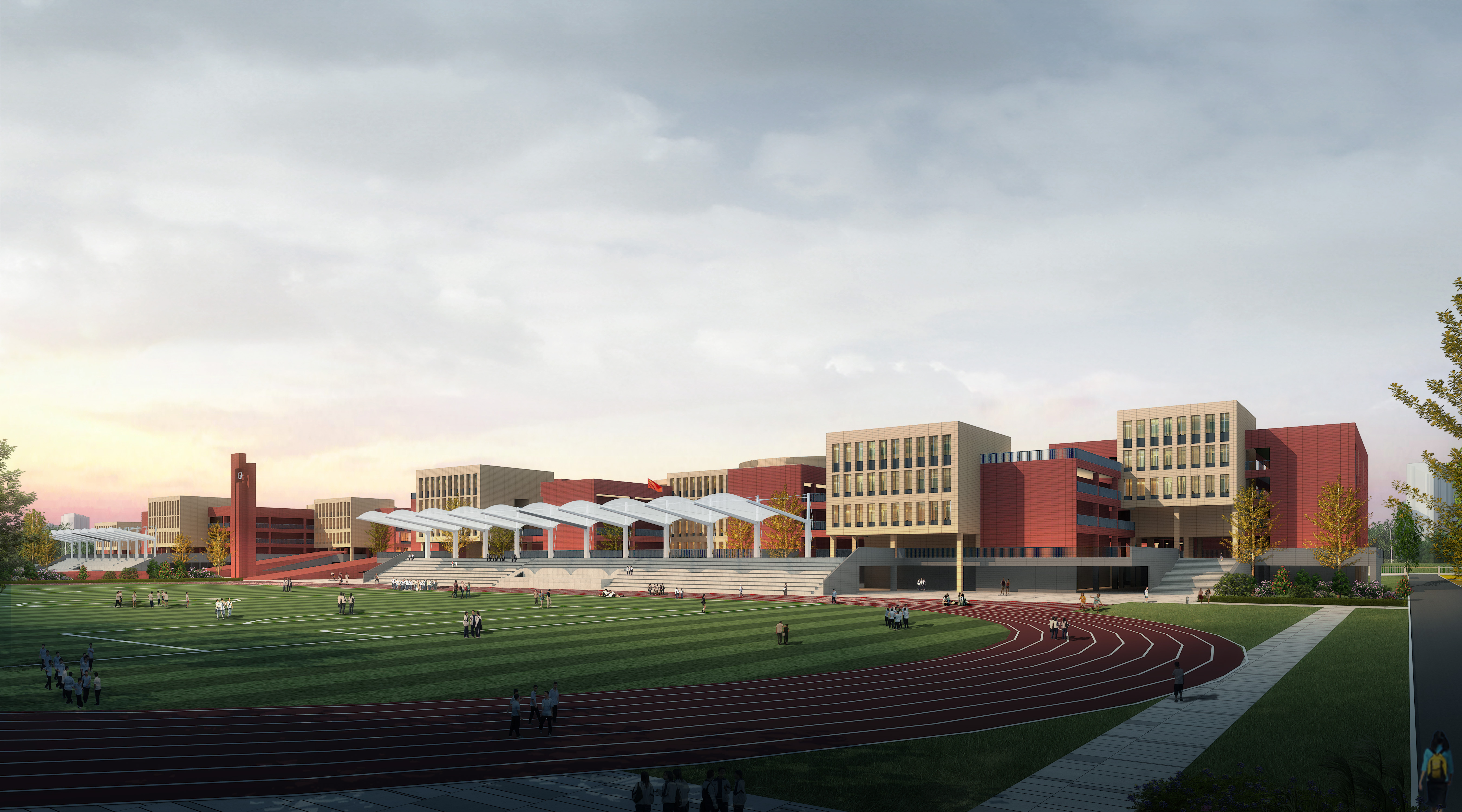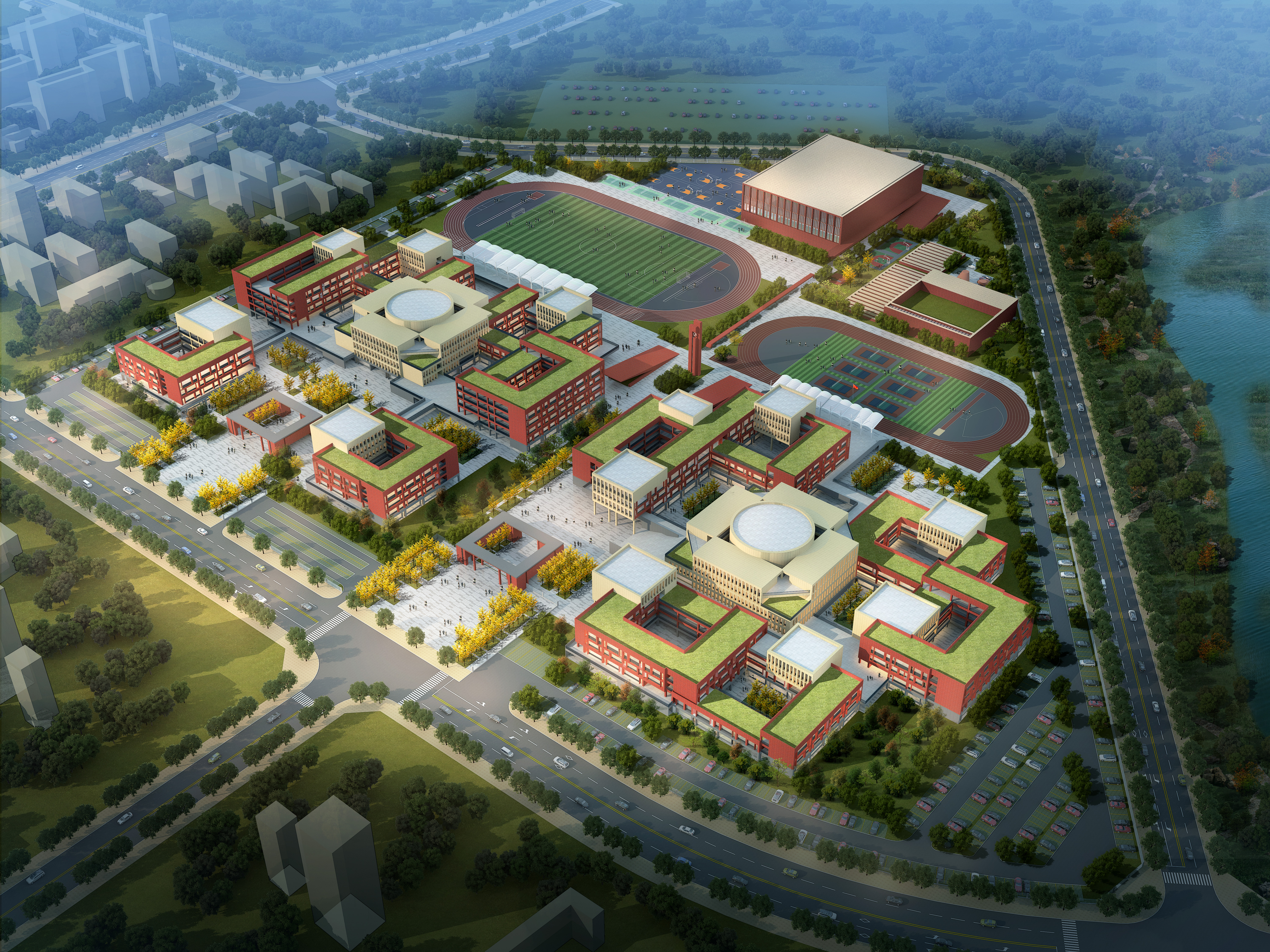 北大金秋: 12年一贯制教育学校,学校占地约220亩,总建面约13.8万m,规划高中36个班,容纳1800名学生;初中规划36个班,容纳1800名学生;小学规划72个班,容纳3240名学生。除教学楼外,该学校规划高中、初中独立标准400米跑道,小学300米跑道,还配备中小学各专业实验室、游泳馆、击剑馆、话剧院、围棋馆、羽毛球馆等体育文化中心及餐厅、学生公寓等配套设施,北大金秋以超前教学理念,构建“终身学习”的美好未来教育场景。